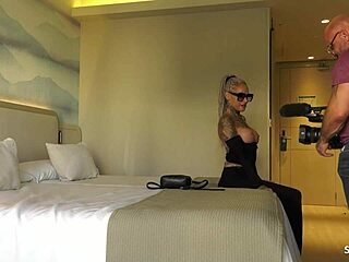 Slim tattooed German wife tempts no-condom hotel cheat with cum on narrow ass