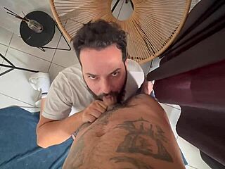 Hey bro tengok DILF berjanggut jilat hentam punggung berbulu keras