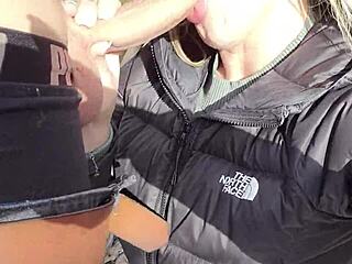 Shy russian brunette gives slobbery pov blowjob on first date in forest