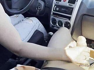 Public Car Handjob and Deepthroat for Guy with Slutty Whore