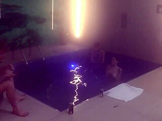 friends jump in motel pool for hot threesome part 1