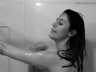 brunette sexy psycho girl takes shower