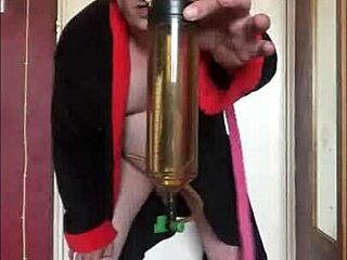 nimpho milf gulps pee in toilet then takes anal creampie squirting