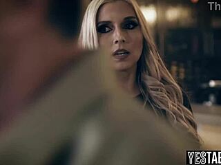 Deze blondine pijpt een grote witte pik
