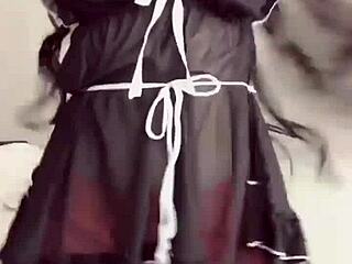 Humiliated housewife maid in pantyhose orgasms naked cooking juicy pussy exposed