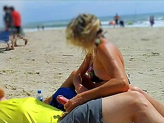 milf plays with stranger’s cock on beach, ends with PUBLIC ANAL cum in her ASS