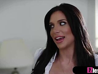 Bezorgmeisje vingert en likt natte milf kut naar orgasme met dildo