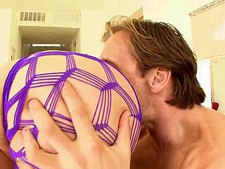Fishnet-clad milf teases anal play