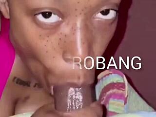Black Mom with Big Natural Tits Deepthroats Huge Cock