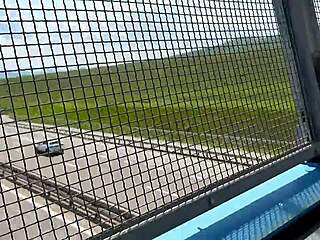 can this smoking bimbo babe handle fast blowjob and cumshot on public balcony with monster cock?
