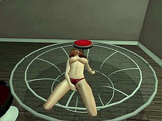 Temptress in Fishnets Dominates with Spanking and Blowjob on Bound Stud.