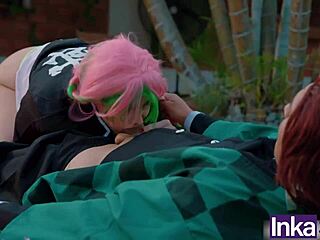 innocent mitsuri takes tanjiro's huge anal creampie facial