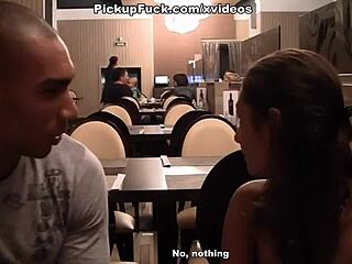 Javni par se divje jebe, sesanje vodi do kavbojke in cum v usta POV