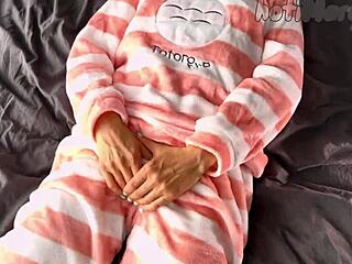Petite Pajama Teen's Shaved Pussy Masturbation Orgasm Closeup