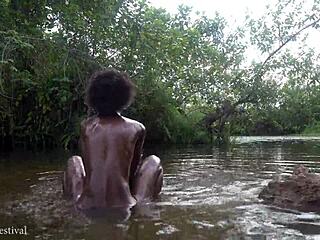 Skinny African Village Girl's River Bath Turns Outdoor Tease