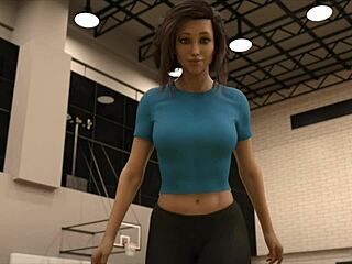 Meet the curvy brunette teen fitness coach in leggings at the gym and take her home for a private session