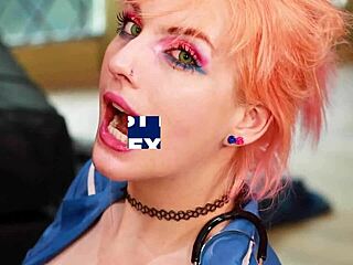 Curvy Blue-Haired Babe Sucks and Plays with Dildo