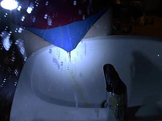 Blue Underpants Pee Soaking Over the Sink
