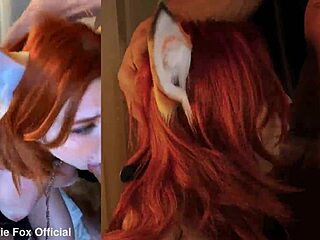 french slut in red satin corset leather pants heels rimmed deepthroated cumshot
