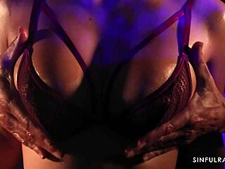 oiled milf's huge pussy lips spread wide in rough sensual massage