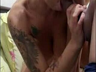 Milf wife gives sloppy blowjob to monster black cock